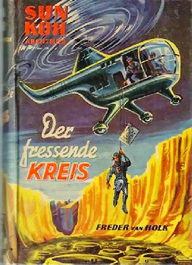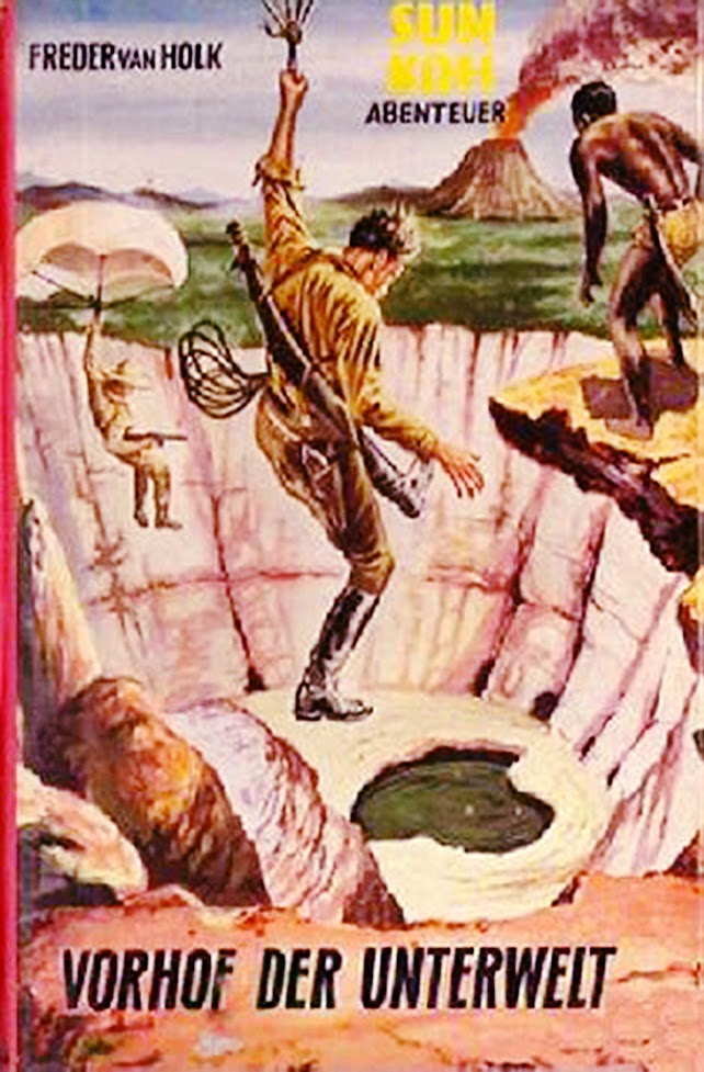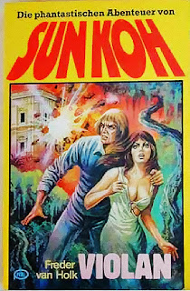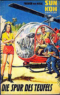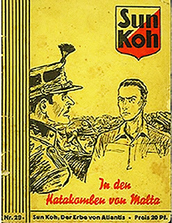 Sun Koh fell from the sky with a parachute in London wearing only pajamas in his first appearance. He is soon revealed as the Prince of an Aryan Atlantis. Tibet figured prominently in these stories and the ravings of the Ahnenerbe institute.