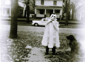 Later on, the legal advisors at Topps became opposed to the whole idea because of their concerns about lawsuits from the parents of a suffocated kid or a blinded kid who walked off a rooftop, or a deafened kid who was run over by a bus, or worst of all, a little kid running around with a flaming paper box stuck on his head! So Woody Gelman began to consider printing the series on special "fireproof paper" that was a starched cheese-cloth fabric that kids could see through, breathe through and hear through. After researching the materials, Ben Solomon rejected the whole idea as too expensive and complicated. At which point Topps decided to drop the whole idea of masks. They released the set as "posters" instead, and retitled the series "3-D MONSTER POSTERS." The unfolded artworks were visually appealing and there was a big fad at the time to sell posters from old monster movies for kids to hang up in their rooms, so the poster market had a longer life span than a novelty Halloween mask. These revisions solved Topps' legal concerns, and avoided the financial risk of using experimental "fabric" materials with unpredictable production costs, but they also took a lot of the fun out of the original idea for the set, which had limited distribution in October 1967 and are today exceptionally rare collector's items."
